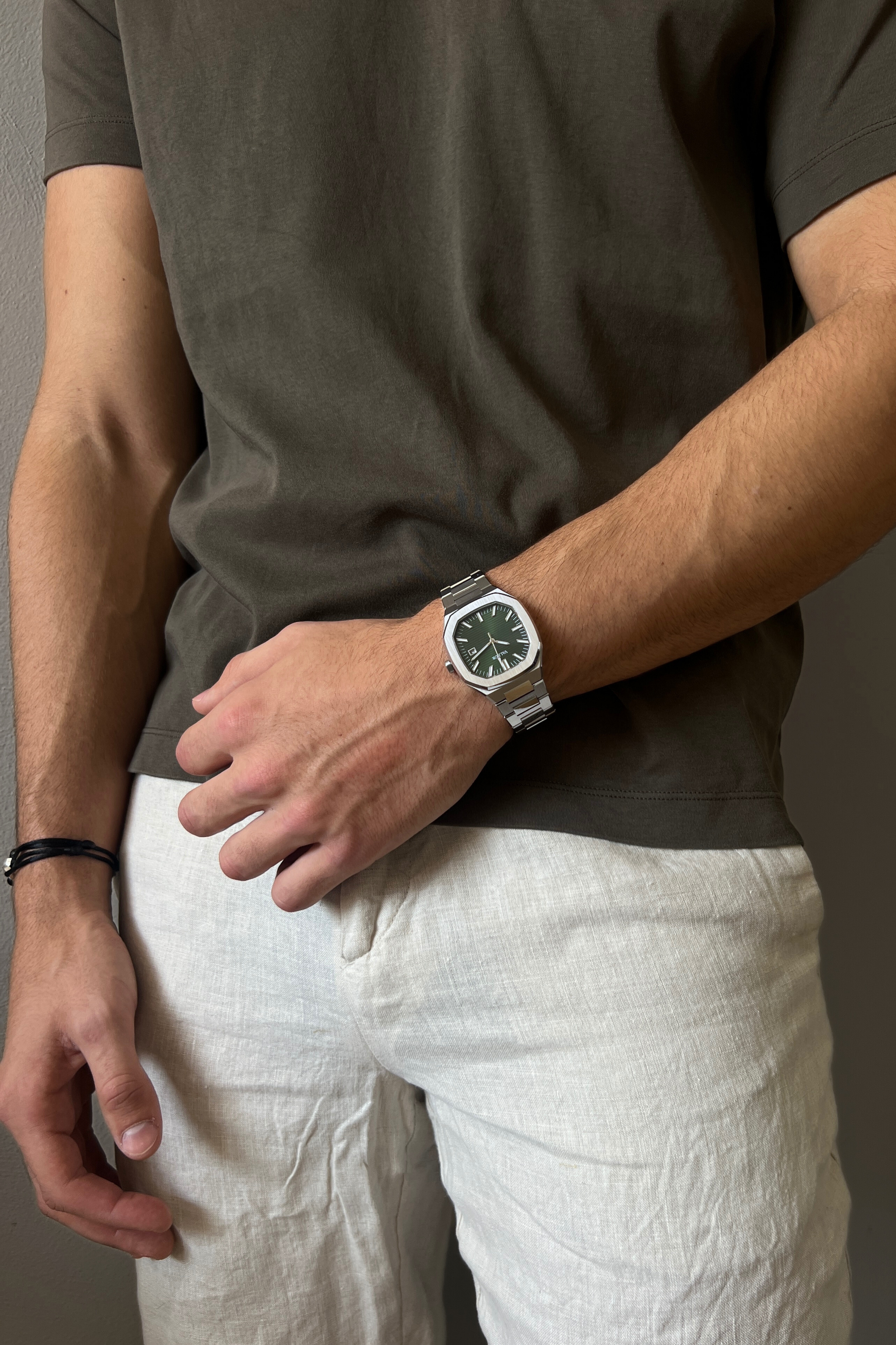 Our automatic movements features a 41-hour power reserve and is powered by wrist motion through a self-winding rotor. It can also be manually wound via the crown and requires no battery. This blend of convenience and precision ensures your watch stays running with regular wear or by manual winding when needed.